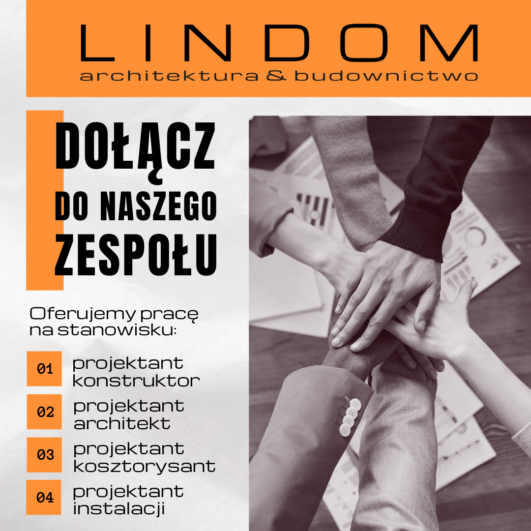 O nas: Lindom Architektura & Budownictwo to firma, która łączy innowacyjne podejście z tradycyjną praktyką. Stosujemy ciągły rozwój metodą małych kroków. Nasze projekty to nie tylko budynki, obiekty czy parki – to przestrzenie do życia, które inspirują i zmieniają świat na piękniejszy, wygodny, funkcjonalny i dostępny. Firma została założona przez wspólników Architekta i Konstruktora, dzięki temu zachowujemy harmonie pomiędzy tymi dwiema dziedzinami. Projektujemy z najwyższą starannością i jakością. Działamy zgodnie z zasadami skupienia, dyscypliny i determinacji połączonych z miłością i pasją do tworzenia, które prowadzą do trwałego sukcesu.